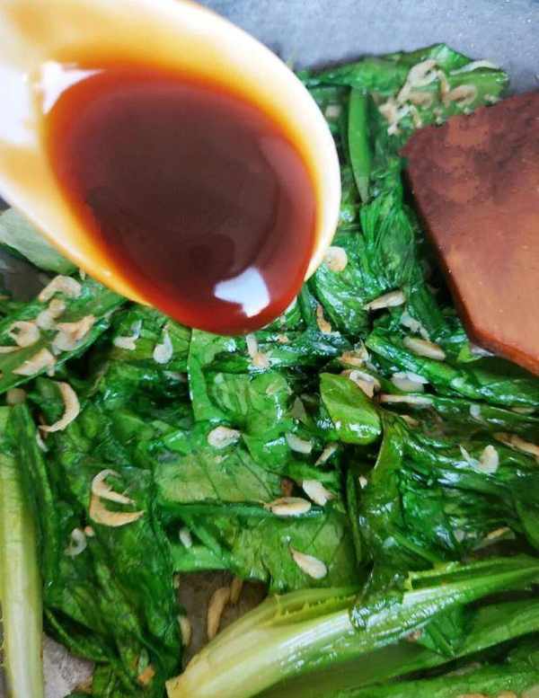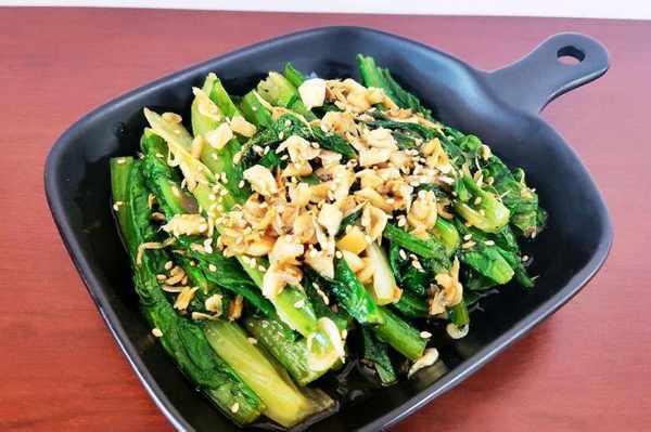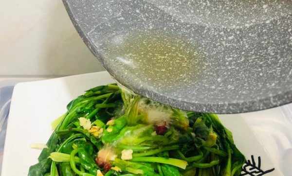 2.倒入沙拉,大火翻炒半分钟。沙拉变软后,加入适量的盐、生抽和蚝油,继续大火翻炒半分钟。沙拉味道好后,关火,从锅中取出。沙拉是绿色的,富含脂肪。脆脆的,超级好吃。