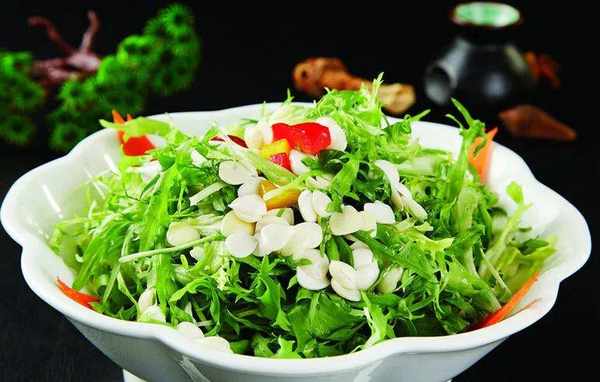 4 将黑木耳、苦菊、美国大杏仁同置于一大碗中
