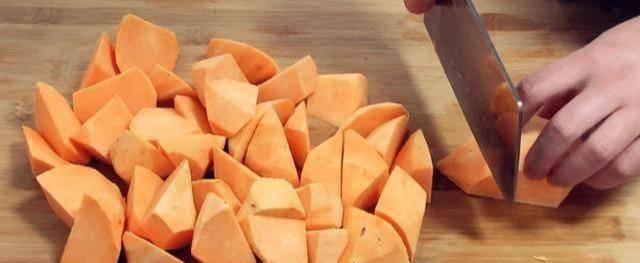 红薯能为人体提供大量的粘液蛋白、糖分、维生素A和维生素C。裁剪的时候一定要注意不要循规蹈矩,按照方格的图案来裁剪。大家可以按照下图的方法,不断变换方向,这样吃起来既美观又方便!