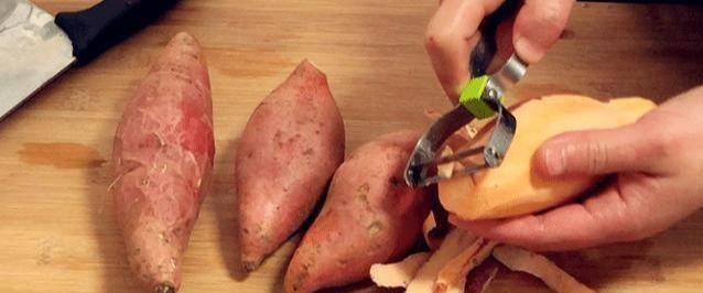 红薯一直深受大家的喜爱。红薯不仅香甜可口、价廉易得,还是一种营养丰富的保健食品。红薯含有大量的膳食纤维,在肠道内不能被消化吸收。能刺激肠道,增强蠕动。排毒,尤其对老年性便秘有很好的疗效。今天做这道菜的时候,一定要选一个完整的红薯,看起来很丰满,洗净去皮,注意不要伤到手!