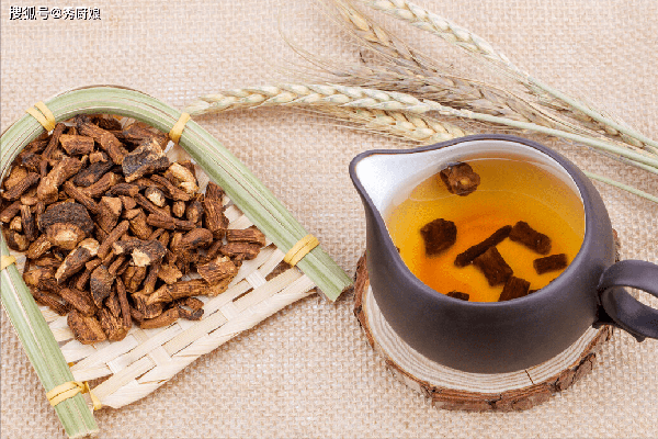 3.小火炒30分钟左右,将水分炒干,炒出香味,然后取出,再晒一天,放在罐中,密封保存,取适量蒲公英根茶,放入杯中,用热水冲泡3分钟,即可饮用。