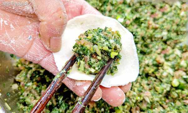 2.将猪肉剁成肉馅,加葱末、姜末、生抽、盐、香油搅拌均匀,腌制10分钟。再加入蒲公英,加入适量的食用油,搅拌均匀即可。