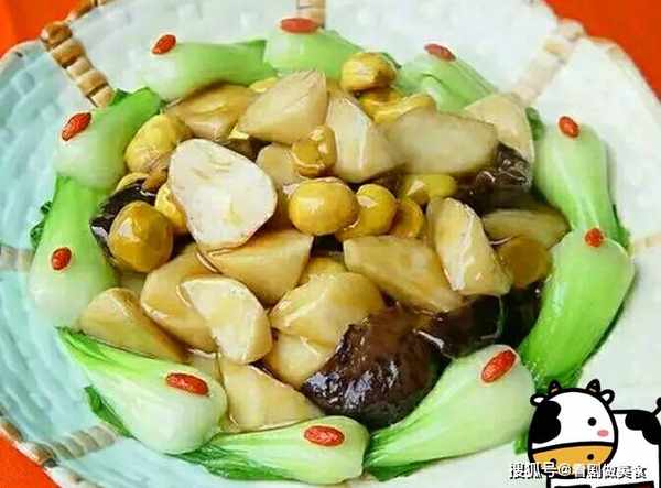 (2)板栗去壳洗净,用水煮熟;小白菜洗净,过水烫熟,两者均放在盘中摆好备用。