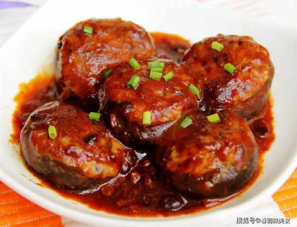 (2)将香菇去蒂去柄,洗净,在菌盖中酿入肉馅。