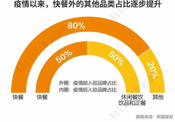 他告诉记者,外卖与线下堂食相比,社交属性弱,更多解决的是一人食需求,也因此,外卖中快餐品类占比高,但疫情以来,其他品类占比也在逐步提升。以入驻熊猫星厨的餐饮品牌为例,以前快餐品类占比约80%;现在快餐品类占一半,另一半是休闲餐饮、饮品和正餐品类。