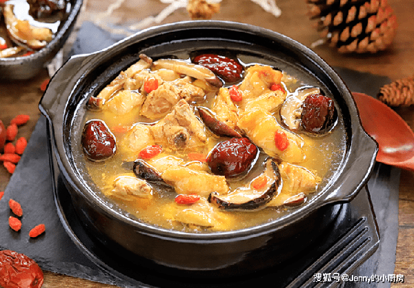 最后放入枸杞搅拌几下,再放入少许盐调味,这道红枣鸡汤就做好了。