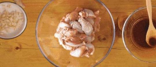 再将姜末、蒜末放入鸡块,加入酱汁,搅拌均匀,腌制10-15分钟...