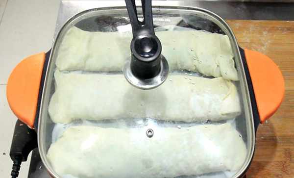 4.菜蟒开水下锅,封口朝下放,上汽以后计时,中火蒸6分钟就熟了。