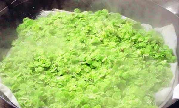 3.锅内烧水,水烧开以后在篦子上铺上棉布,把榆钱均匀地摊在棉布上面,盖上锅盖中火蒸4分钟就可以了。