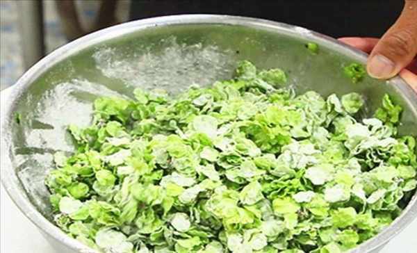 1.首先,我们准备榆钱300克,倒入盆中用清水淘洗干净,放到有阳光的地方,把水分控干。