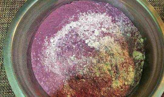 配料:香干适量、猪肉适量、紫薯粉适量、面粉适量、白糖少许、酵母适量、盐适量、生抽1勺、蒸鱼豉油1勺、鸡精少许、葱3根烹饪步骤:1.面粉、紫薯粉倒入盆中,加少许白糖混合均匀