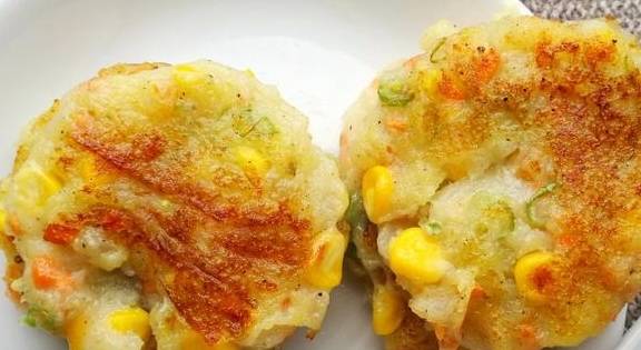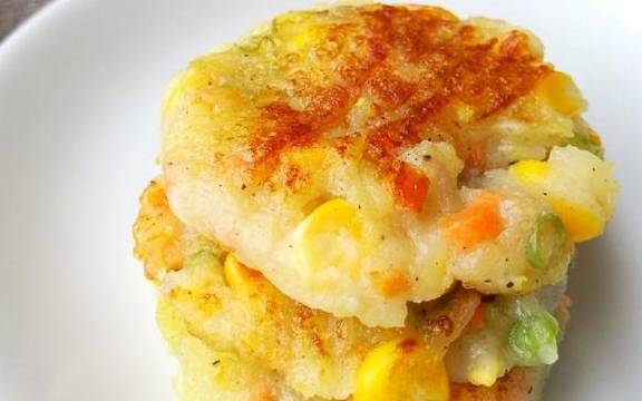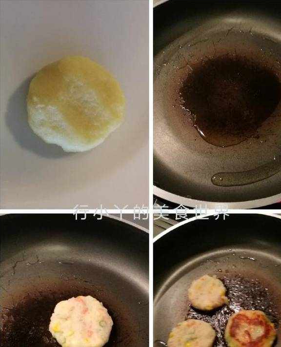 3.煎饼。平底锅加少量油,取适量土豆泥团成球,并压成圆饼。油七成热时,放入土豆饼(土豆饼可以直接在手上边做边下锅,更加方便),小火慢煎,待一面上色后,用铲子翻面,煎背面,两侧都上色后,土豆饼就煎好了!美味又营养,开吃!