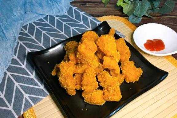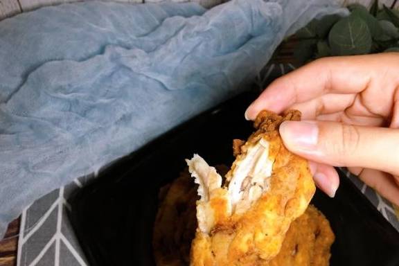 4.全部炸好后,把油温提升至6成热再把鸡块复炸10秒捞出即可。