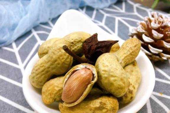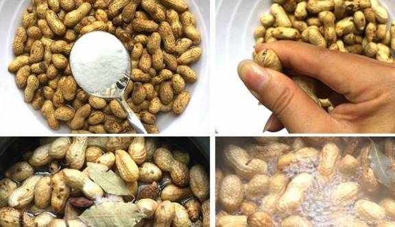 3.锅里烧适量水,倒入花生,放入八角、香叶、盐大火烧开后转小火煮30分钟。