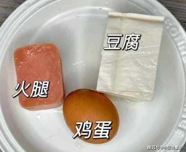 第一步:准备嫩豆腐、火腿和鸡蛋,先将嫩豆腐放入容器中,加入足量的水,浸泡半小时,既可以避免酸味,又可以去除豆腥味。