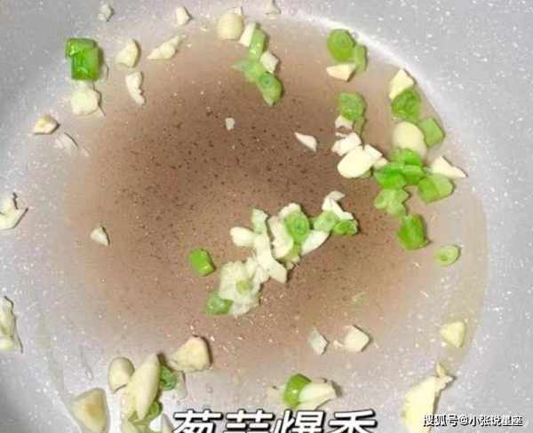 第四步:锅里放少许橄榄油,加半勺肥油融化,加入少许蒜白和蒜末,大火炒出香味。