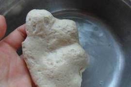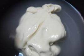 4、当手中的面团难以再析出淀粉的时候,手中的面团就成为面筋,把它浸泡在水中备用;把所用用来洗面团的水混合在一起,静置6个小时以上,让其自然沉淀。(最好是头天晚上洗好,放置一夜!)