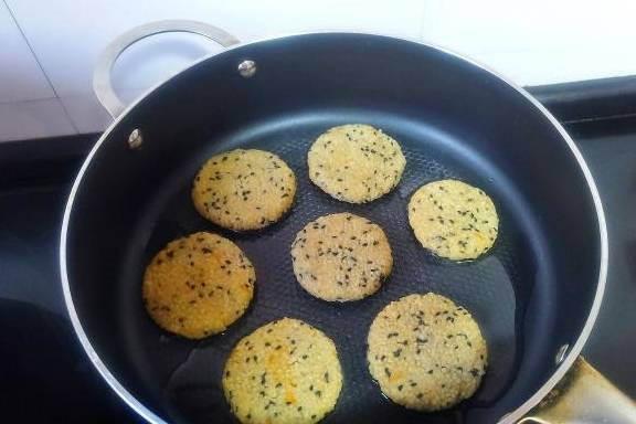 【香煎小米红薯饼】