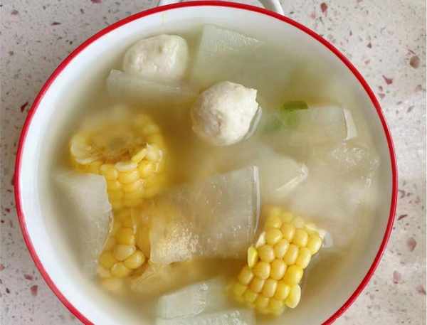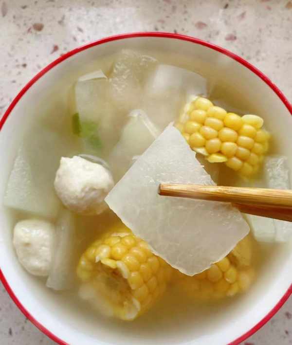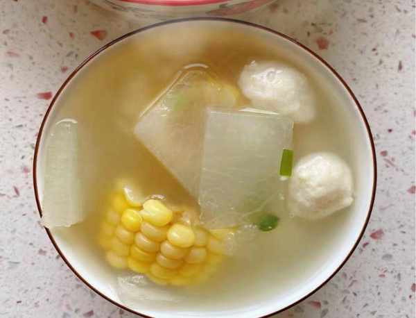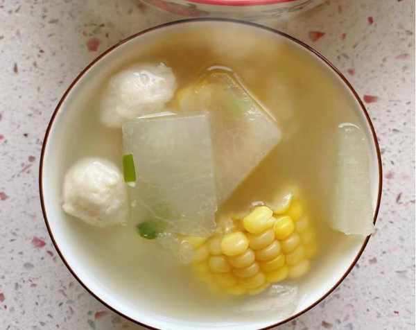 小贴士:冬瓜、玉米、鸡汤是夏天的必备品。难度一般都很低。玉米要撕掉叶子和玉米丝,还要用盐水把玉米洗干净,把虫卵逼到玉米里面。鸡肉在碗中用热水混合,去除皮肤和蜡质肉并切碎。这道汤记得用橄榄油炒蒜末和姜末,加入冬瓜翻炒几下,在胸肉中加入丸子和玉米,煮约10分钟,最后加盐和胡椒调味,用少许装饰切碎的。葱,把它从锅里拿出来。