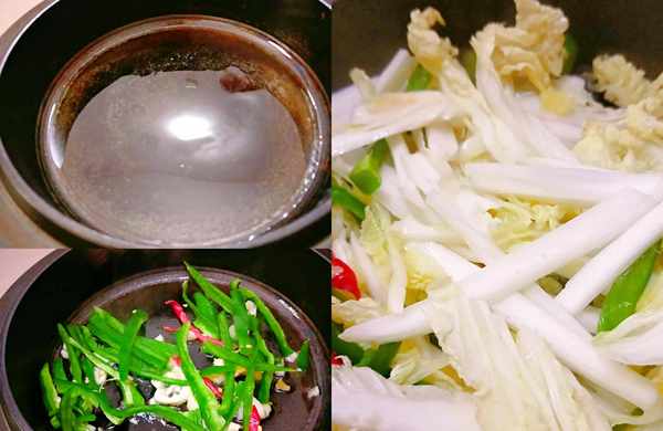 【食材和配料】:娃娃菜,青椒,韭菜,小米椒,蒜,姜,火锅粉条,味极鲜,盐,十三香,食用油。