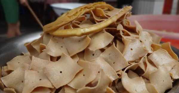 一张巴掌大的米字薄饼,裹上折耳根、海带丝、炸黄豆、胡萝卜丝、胡辣椒等,再加上酸辣可口的汤汁,是夏日开胃消暑的佳品。