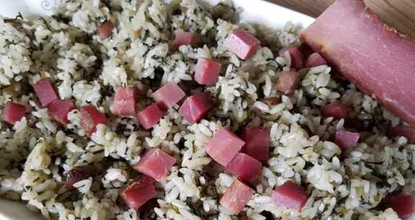 做好的社饭腊肉味十足,米饭油而不腻,野葱浓郁的葱香和腊肉的肉香激发出了更高层次的香味,加上青蒿菜适当的点缀,让米饭层次丰富,口感油润。