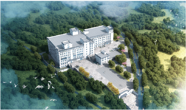 厂区采用徽派建筑风格,满足工业厂区风貌要求的前提下,建筑形体外观的设计进一步体现了现代、高雅的美观性和相对于功能布置的实用性。