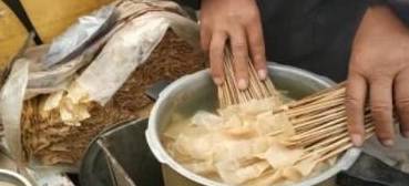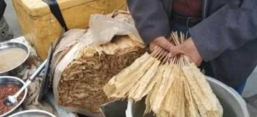 今天要给大家分享的是一位8旬的老大爷,在街头“甩卖”自创小吃,1元一根路人抢着吃,邻居:谁吃谁傻!大爷们的这种小吃,其实就是我们平时在集市上见到的人造肉,在火锅店里面也经常会见到这种食材,不过火锅店里面人们会把它称之为油豆皮儿,相信大家都有吃过吧,把油豆皮切成宽条之后,用竹签穿起来。