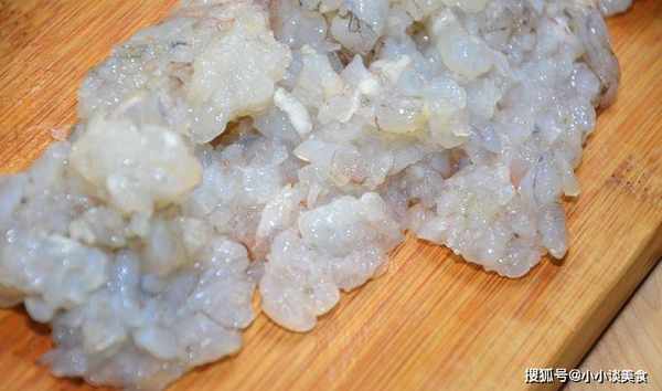 第一步:准备好几种食材,虾去头,虾尾拉掉,虾线去,用刀把虾切成肉泥。