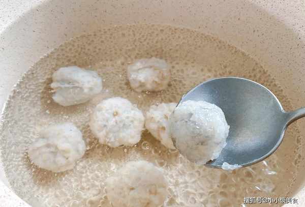 第四步:开锅烧半锅水,烧开后转中火,手捏虎口捏成虾球,放入锅中,记得要大火煮.,避免有的炸了,有的还没有煮。