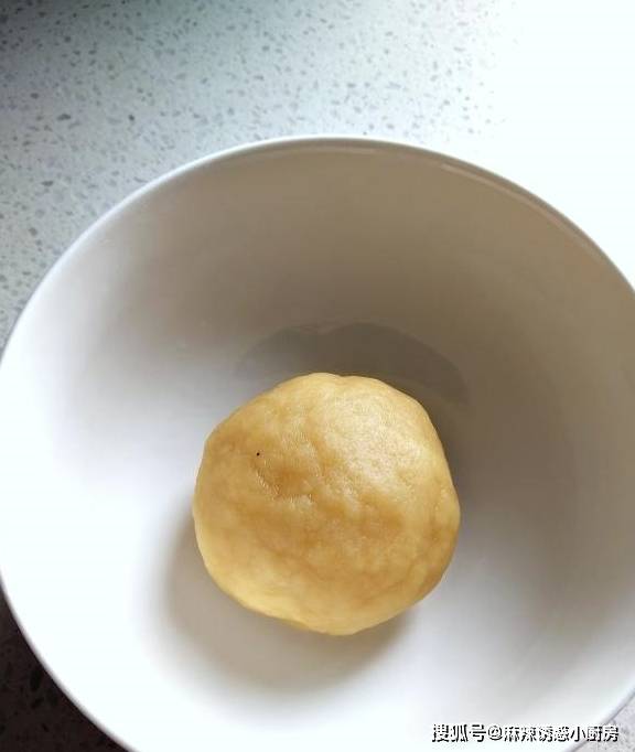 第二步:再给盆里筛入100克面粉,用40克食用油和面,揉成一个光滑的面团,密封起来饧面,这是油酥面。