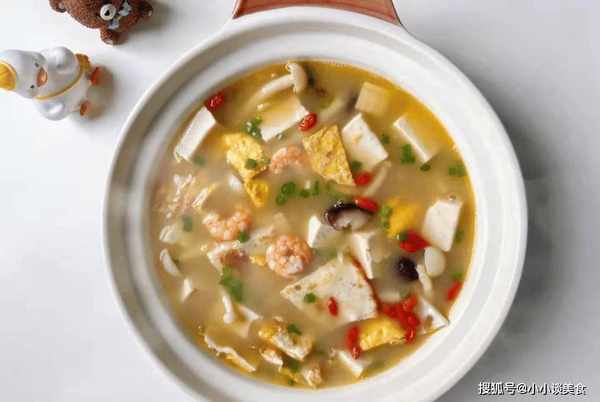 三鲜菇豆腐汤是一道老少皆宜的鲜汤。几种美味的蘑菇与虾肉和鸡蛋一起煮在锅里。豆腐含钙质,使汤汁更加奶香,更易消化吸收。喝脑子会更聪明,补钙会长高,更有利于孩子的健康成长。