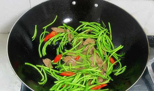 第七步:等到猪肝熟透(切记不要煮过头),加入一些干辣椒,少许盐,少许鸡精,稍微翻炒一下,等入味。