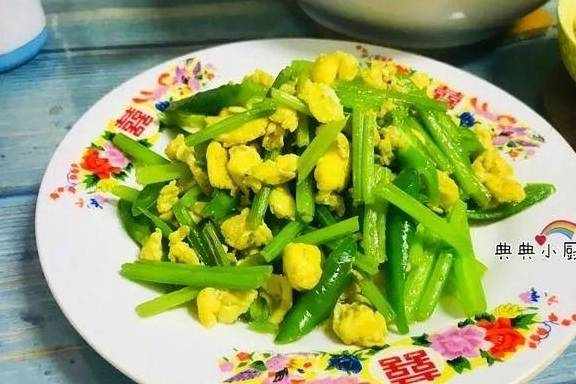 芹菜炒鸡蛋。这是一道非常家常的菜,只是没想到很多人没有这般试过呢。操作非常简单,也容易上手。鸡蛋加少许盐和清水打散,芹菜切断。锅里加油倒入鸡蛋液,见鸡蛋液凝固之后用筷子给滑开成块后装起来。再起油锅倒入芹菜翻炒至断后之后把之前炒好的鸡蛋倒进去,翻炒均匀后加盐提味即可出锅装盘食用了。肉太贵,就吃鸡蛋吧,做法多样化,营养也不差!