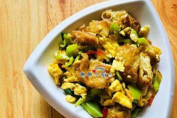 油条鸡蛋杂炒。准备材料,鸡蛋两只,油条半根,青椒两个,大蒜少许。鸡蛋加少清水打散,油条切大一点的段,青椒切丝,大蒜切碎。热锅凉油倒入鸡蛋液,倒入之后看鸡蛋液凝固之后立马用锅铲滑开,翻几下之后装起来。直接把青椒丝下锅,里面的油够了无需再回了。翻炒至青椒变软就可以了。清炒变软之后,倒入油条段。油条下锅之后来来回回翻炒几下就会变软下去的。等油条变软之后再把之前炒好的鸡蛋加进去。简单的翻炒几个,最后倒入大蒜碎炒匀就行了。油条本身是咸的,但是呢因为油条比较少,建议大家可以再加一点儿盐提味最好!