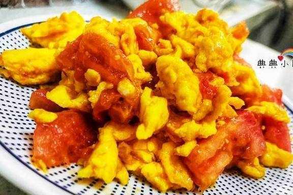 西红柿炒鸡蛋。鸡蛋加适量清水打散,西红柿去皮之后切成小块。越小越好,这样方便炒。锅里放油倒入鸡蛋液,等鸡蛋凝固之后划开成小块装起来备用。再起油锅倒入西红柿,加糖炒至出汁之后把之前的鸡蛋块倒回锅里翻炒。等鸡蛋炒至跟西红柿混合之后,加适量盐出锅即可!