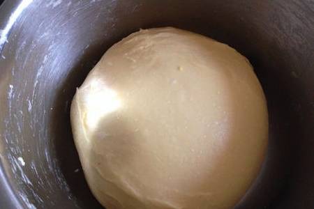 揉好的面团醒25分钟左右,发酵至原来2-2.5倍大左右,然后用手按压,压出大部分空气。