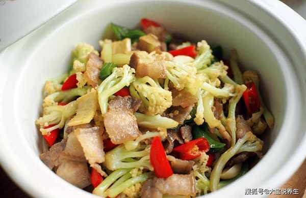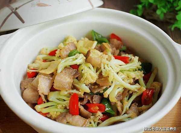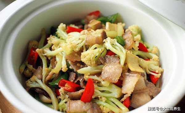 小贴士:花椰菜是最受欢迎的蔬菜之一。杀虫剂和一些虫卵残留在菜花的表面。需要用盐和面粉浸泡,以驱除虫卵和清洗菜花的脏东西。如果想要No更好的口感,建议再次将水打发泡,以节省菜花的烹饪时间。五花肉一定要用盐等腌制,记得先把五花肉炒熟,再下花菜,翻炒,最后调味出锅。