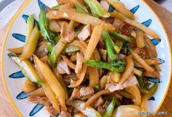 小贴士:芥菜是一种脆脆的蔬菜。芥菜头必须从叶子和老茎上切下。把芥菜头切成几小块。想要芥菜头更好吃,应该用盐水和食用油稍微煮一下。烫头可以改善味道和颜色。腊肉是卤肉,直接吃会很咸,把腊肉泡在淘米水里,中火翻炒腊肉,把腊肉炒成肥肉,下芥菜翻炒,最后加清淡酱油和蚝油,快速翻炒至入味后起锅。