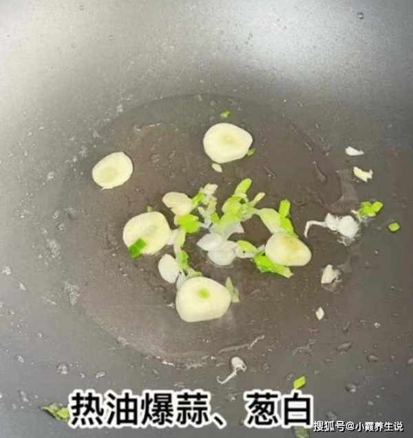 第四步:锅底加少许橄榄油,放入葱段和蒜片,倒入蜡,翻炒至蜡变软。