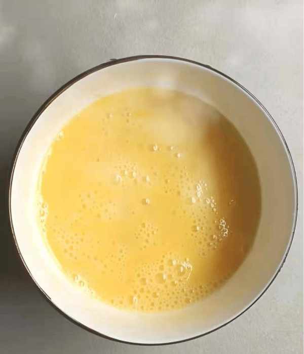 第四步:锅稍微预热,倒入蛋液,中火将蛋液煎熟,翻炒即可,准备好以上的一些食材,开始煮这个丝瓜、虾和鸡蛋。和豆腐汤。