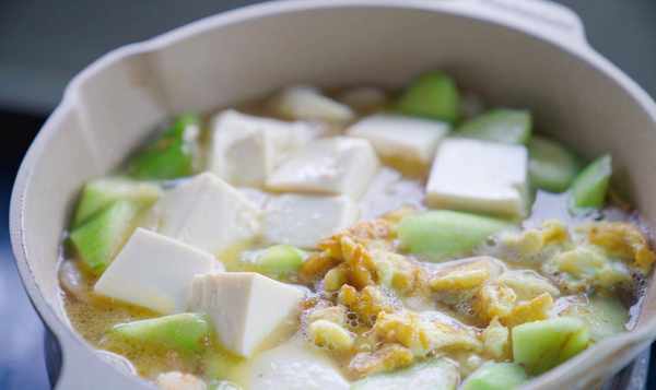 烹饪技巧:买丝瓜、鲜虾和豆腐,鸡蛋提前煮熟。丝瓜、虾仁、鸡蛋、豆腐汤的顺序不难掌握。