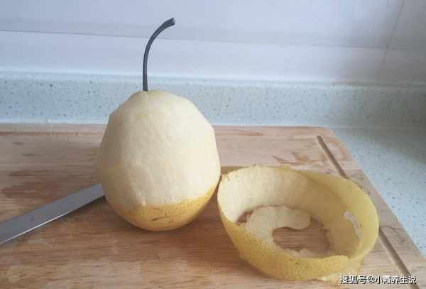 1:将一个梨切开外皮,将梨切半,挖出核,将梨切成数小块,这样梨肉容易熟,营养价值也容易加入甜汤中.