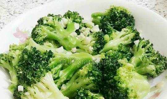 配料:西兰花1颗、蒜头5瓣、花生油适量、盐(焯西兰花用)少许、盐(炒西兰花用)半勺、酱油少许、清水(焯西兰花用)适量