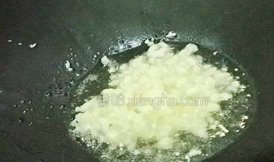 6.锅热,倒适量花生油。油五成热,放蒜蓉进去翻炒出香味。