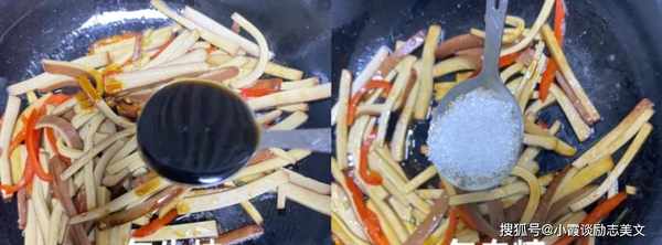 第五步:锅中放少许生抽和蚝油,加一勺黑酱油上色,加盐和糖,加一勺鸡精,炒出香味即可。