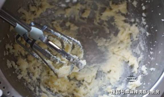 3、将黄油打发至颜色变浅、体积变大的状态。