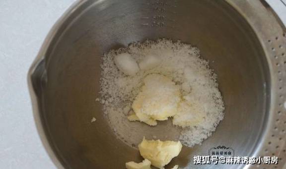 2、提前将黄油从冰箱取出,放室温软化,加入白糖。