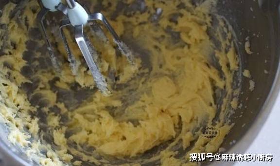 5、打发至蛋黄已经完全融合到黄油里。