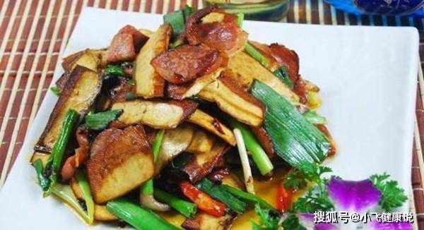 材料:盐渍里脊肉150克,青椒50克,豆腐干3块,蒜末,鲜汤,豆豉,色拉油,酱油,料酒,盐